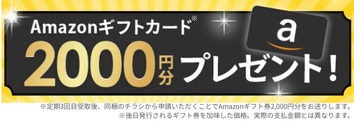 ※※定期3回目受取後、同梱のチラシから申請いただくことでAmazonギフト券2,000円分をお送りします